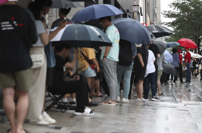 실제 매장 앞에서도 오픈런 줄이 늘어나고 있으며, 이날 오전부터 비가 내리는 궂은 날씨에도 시민들은 파이브가이즈 버거를 먹기 위해 길게 줄을 서고 있습니다. 오픈런 줄은 인근 매장을 둘러 약 200m까지 이어진 상태입니다.