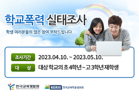 경기도교육청은 이달 10일부터 다음달 10일까지 학교폭력 실태조사를 실시할 예정입니다. 이번 조사는 해당 지역 초등학교 4학년부터 고등학교 3학년까지의 학생들을 대상으로 진행됩니다. 학생들은 회원 가입 절차 없이 학교폭력 실태조사 웹사이트에 접속하여 참여할 수 있습니다. 이번 조사에서는 학교폭력을 목격한 경험과 인식, 학교폭력 가해, 피해 경험 등이 조사될 예정입니다.