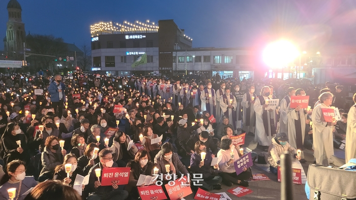 정치적인 논란이 일고 있는 일본 기업에 대한 강제노동 피해자에 대한 배상을 요구하는 대법원 판결을 무시한 것으로 비판받는 윤석열 대통령에 대한 사임 요구가 나왔습니다. 이번 주말 전주에서 열린 집회에서는 천명 이상의 신자와 목사들이 참석했습니다.