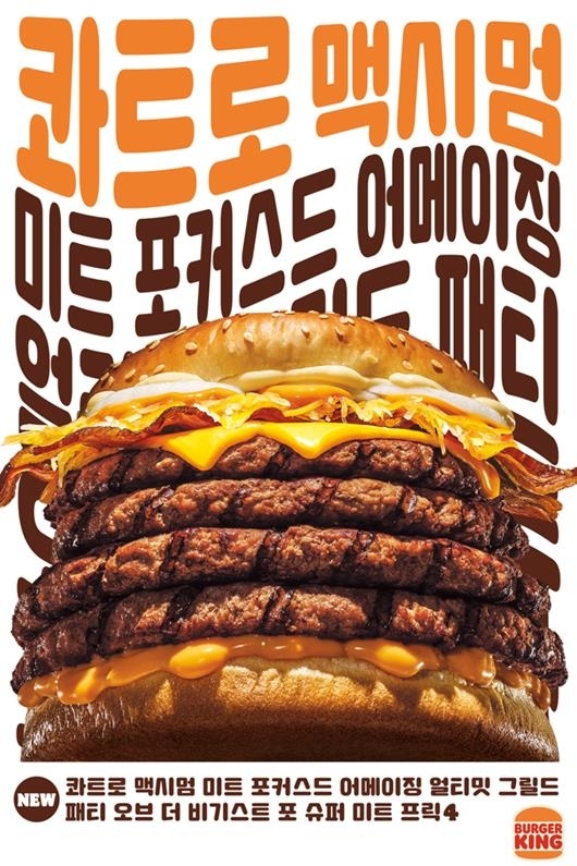 버거킹이 '콰트로 맥시'라는 새로운 버거 제품을 출시했다. 이 제품은 3개 또는 4개의 소고기 패티로 만들어졌으며, 가격은 각각 14,500원과 16,500원이다. 음료와 함께 주문하면 세트 메뉴로 판매되며, 가격은 각각 16,500원과 18,500원이다.