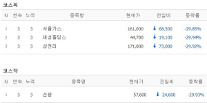 최근 Societe Generale (SG) Securities를 통해 대규모 매도를 경험한 몇몇 주식들이 하락세를 이어가고 있습니다. 26일 오전에는 서울가스, 대성홀딩스, 삼천리가 주식시장에서 3연속 하한가를 기록했으며, 동시에 선광은 KOSDAQ 시장에서 하한가를 보였습니다. SG Securities는 이러한 주식들의 매도자 상위에 위치하고 있지만, 국내외 다른 증권사들도 이러한 주식들을 매도하고 있습니다.