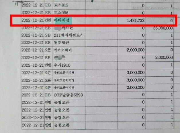 A 씨는 이기영이 아버지를 살해한 후 계좌 이체 내역에 ‘아버지상(喪)’이라고 표시하며 유족을 우롱했다며 분통을 터뜨렸다.
