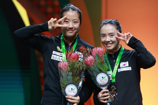 한국 탁구 대표팀은 28일 남아프리카공화국 더반 인터내셔널컨벤션센터(DICC)에서 열린 2023 국제탁구연맹(ITTF) 개인전 세계선수권대회에서 남녀 복식에서 은메달 2개와 동메달 1개를 따냈다. 한국 탁구가 세계선수권에서 메달 3개 이상을 수확한 건 2003년 파리 대회 이후 무려 20년만의 쾌거다.