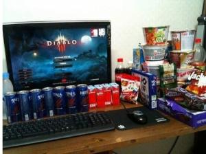 글에서 나오는 핫식스나 댓글에 등장하는 레드불은 카페인이 다량 들어간 에너지 드링크로, 일종의 각성제로 사용됩니다. 이에 대학생들은 시험 전날 밤을 새기 위해 마시기도 합니다. 하지만 인위적으로 '각성' 효능이 있는 만큼 추후 가해지는 신체적 부담감이 크다는 부작용이 있습니다. 이에 따라 디아블로 시리즈를 즐기는 유저들은 억지로 게임을 장시간 하기보다는 몸에 좋은 음식을 먹으며 적당히 게임을 즐기라는 충고가 필요합니다.