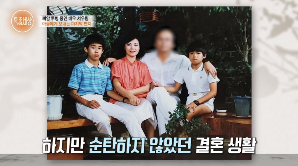 지난 8일 방송된 MBN '특종세상'에 출연한 배우 서우림이 두 번의 이혼에 대해 고백하며 아픈 가정사를 털어놨습니다. 서우림은 28세에 명문대생과 결혼 후 두 아들을 낳았지만 행복한 가정을 유지하지 못하였습니다.